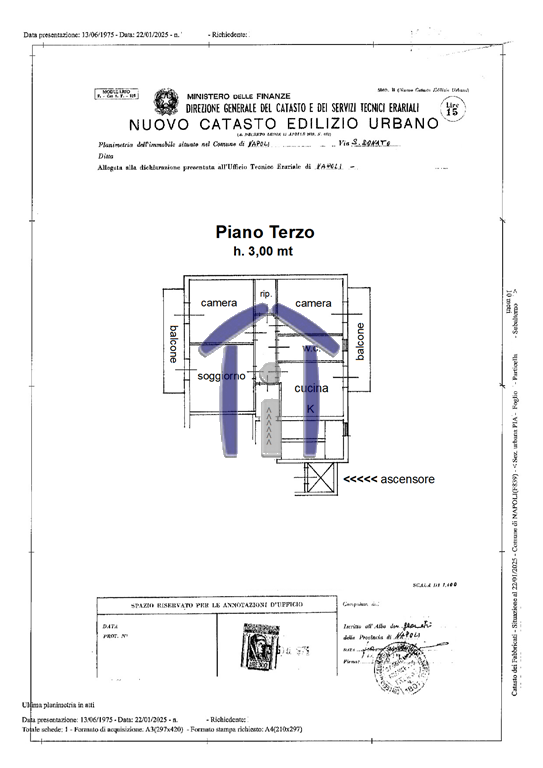 L’immobile è situato al 3° piano con ASCENSORE di uno stabile di edilizia privata, edificato in cemento armato e quindi antisismico; gode di un’ottima esposizione, per cui è molto luminoso e soleggiato; si presenta in buono stato conservativo ed è munito di porta blindata, infissi in doppio vetro camera in alluminio, antenna satellitare centralizzata.