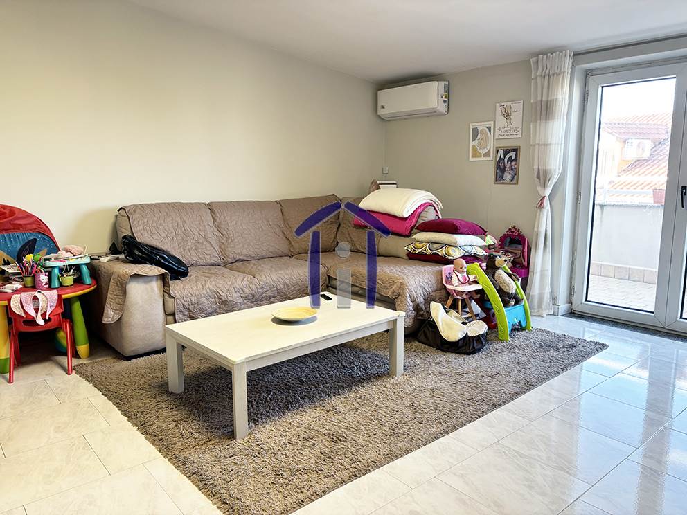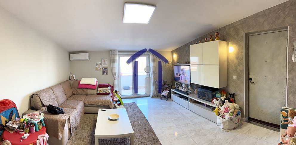 L’immobile è composto da Ingresso in ampio Salotto, Cucina abitabile, n° 1 Camera matrimoniale, n° 1 Cameretta, n° 2 Servizi (1 con vasca, l’altro con cabina doccia) oltre a n° 2 balconi e n° 1 posto auto scoperto.